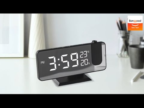 Rechargeable LED Mirror Alarm Clock with Big Screen, Temperature, Humidity Display, Radio, and Time Projection Function