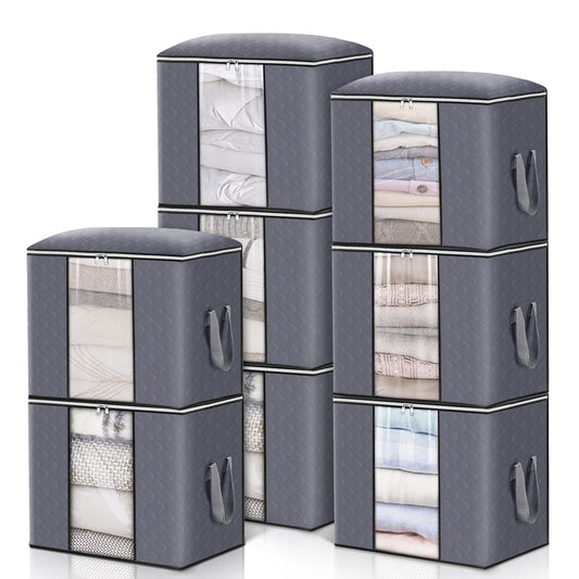 Set of 8 KING DO WAY 90L Large Storage Bags - Foldable Closet Organizers with Durable Handles for Clothes and More
