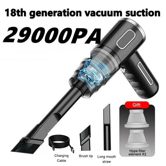 Powerful 29000Pa Wireless Car Vacuum Cleaner - USB Rechargeable, 2000mAh Battery, Portable Mini Wet and Dry Cleaning Appliance for Household Use